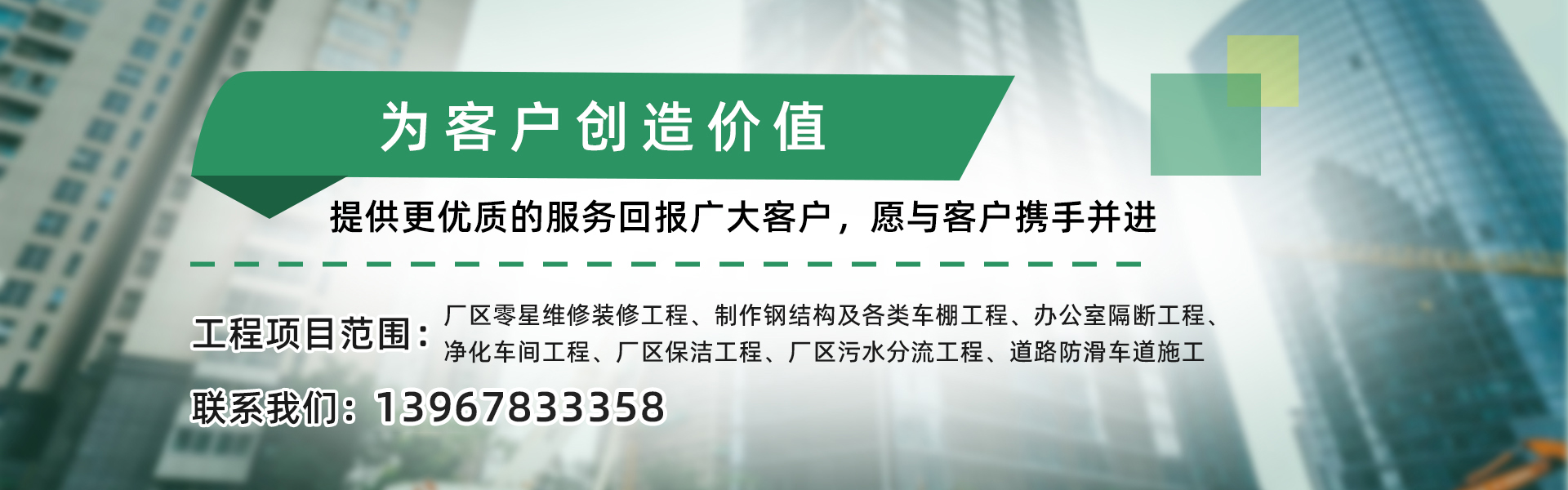宁波中海易科市政工程有限公司是一家专业为企业单位厂区、厂房、道路、办公楼装修、厂房改造、设计;厂房零星修缮工程、厂房保洁更新、设备安装移位及搬移,管道安装及改造工程,车棚、雨棚扩建制作工程及室内外装饰设计、预算、施工材料与一体的专业装饰工程公司。所承接并完成的各类大、中、小型工程均受到了客户的一致好评,在市场上赢得良好的信誉。不管您是我公司的新客户,还是老朋友,宁波中海易科市政工程有限公司全体同仁,为能有机会向您提供优质、全面的服务而感到荣幸。我们将更加不懈的努力,提供更好服务回报广大客户,愿...